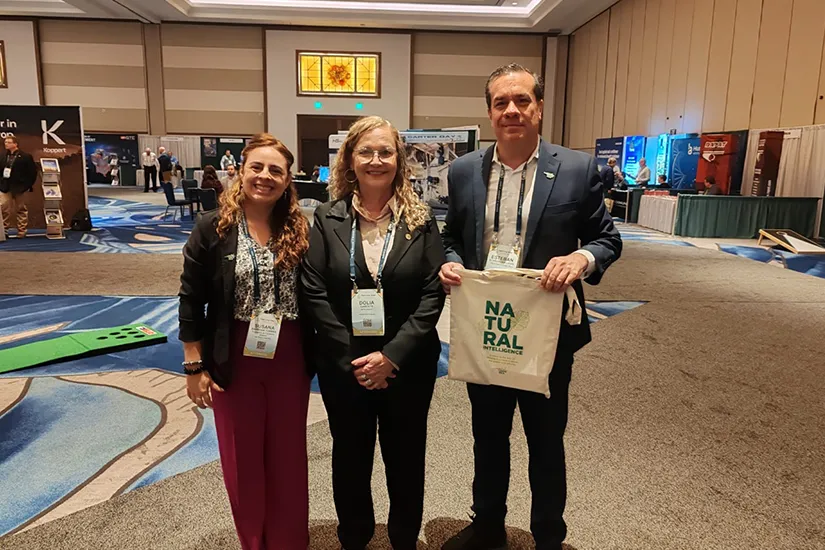 Oportunidad de comunicación e intercambio de experiencias con pares de otros países, Dra. Dólia Garcete junto a Esteban Schroeder Leiva y Susana Barboza Torres, agentes de Comercio exterior de (PROCOMER) de la ciudad de San Rafael de Costa Rica, durante el evento ASTA, Orlando, Florida, diciembre, 2025.
