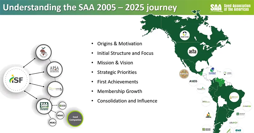 Fueron momentos de aprendizaje, compromiso e información del situación del sector de semillas local. La Asociación de Productores de Semillas del Paraguay, estuvo representado por Dra. Dólía Garcete, quien participó de la Reunión previa donde fueron presentados informes de las actividades desarrolladas durante el año por los Grupos de trabajo que cuenta la SAA, de igual modo, participó de la Asamblea de la Seed Association of the Americas (SAA), reafirmando el compromiso de Aprosemp con la integración regional y el fortalecimiento del comercio de semillas en las Américas.