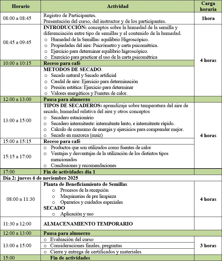 Evidencias del curso “Secado de semillas, todo lo referente al manejo de secaderos”