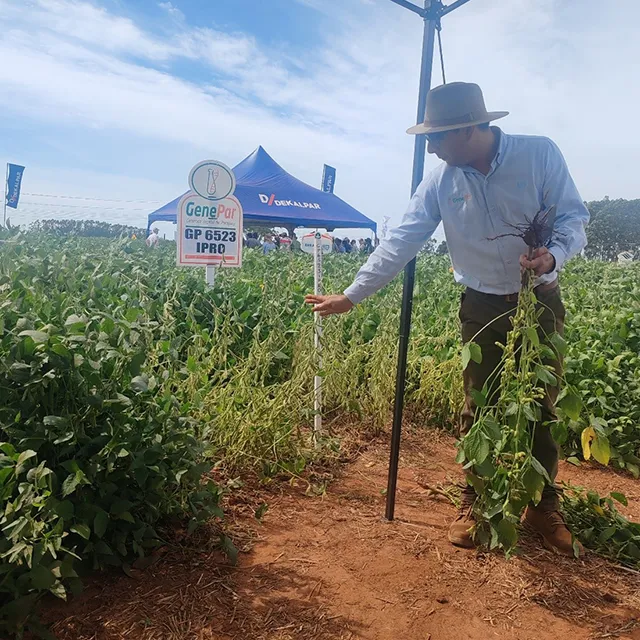 Ing. Agr. Paulino Fernández, de GENEPAR, presentó las nuevas opciones disponible, indicando que son materiales con la tecnología RR desarrolladas para el ambiente paraguayo. Por su parte el Ing. Pascual Gonzalez, representante de Nidera Semillas Paraguay, destacó que los materiales recomendados son genéticas nuevas resultados de la Investigación y desarrollo de la empresa, que fueron probadas en condiciones climáticas de nuestro país.